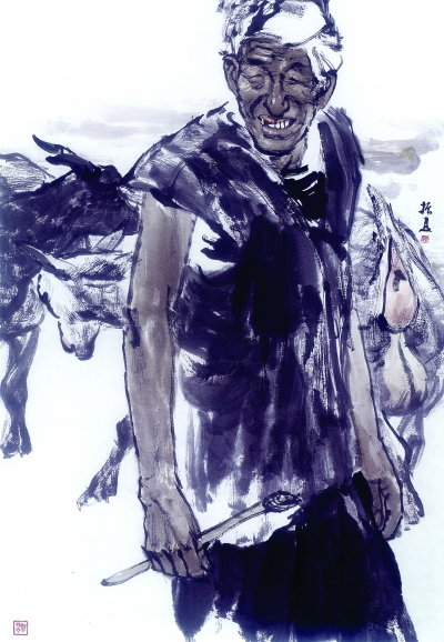 站在刘先生画前,我被深深地感染了。在《阳澄湖畔牧鹅人》、《陕北牧人》、《街头蛇舞》、《秋水》等作品中,那些平凡的劳动者形象栩栩如生、颇有神韵。我以为,画家能够发现并捕捉到人物瞬间的美感,不仅仅得益于扎实的基本功、丰富的人生阅历和修养,这更是一种悟性和天赋。