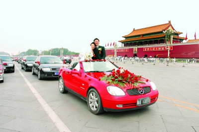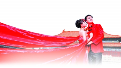 华服簇拥之下,洞房红烛的脚本似乎远远不够。巍巍长城雄关漫道,洋溢着新人的银铃笑声。古长城不见凄冷哭夫的孟姜女,笑靥如花的面庞诉说着美好和富足。肃穆的故宫、太庙,向年轻人讲述时光的故事,也为这些青春的爱情做上庄严的注脚。婚车从天安门前驶过,犹如当年盛大庄严的阅兵礼。时光白驹过隙,百千年后,至高无上的专享变成平易的开放,神圣领地向普通而平凡的人们邀约,自由交流,欢畅共享。