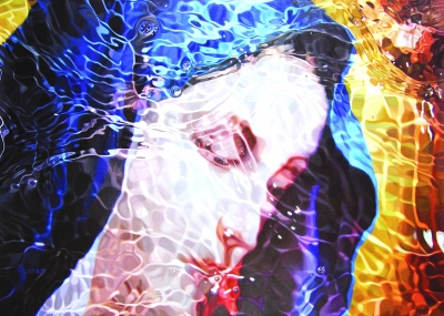 陶冬冬的《水的世界》系列作品描绘了一组组不同的人物形象被放置于水中的景象。色彩绚丽,透着光晕的水的波光映射着画面。作品中的水清澈易现,却是以明艳的大色块,甚至是撞色来突出水的纯净。肖像不是他画中的主体,所有肖像画中的水才是真正的表现对象。水的包容与映照,使得作品更多是在传递禅的传统哲学思想。陶冬冬说:“我一直在寻求更有自己艺术语言的东西,当然我不是刻意去追求。”