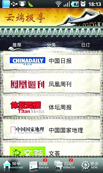 本报北京1月17日电(记者陈建栋)今天,随着《凤凰周刊》、《湖南日报》、《华商报》等一批媒体的上线,“云端读报”移动媒体出版平台的接入媒体达到40家。