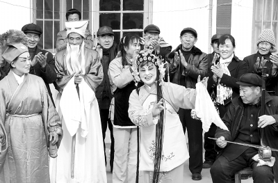 1月18日,山东省广饶县丁庄镇吕剧协会的吕剧票友正在为丁庄镇敬老院的老人们表演节目,不时赢来阵阵掌声。新春之际,该县80多个庄户剧团,将分赴各乡镇和村庄进行巡演,宣传移风易俗和党的富民政策。