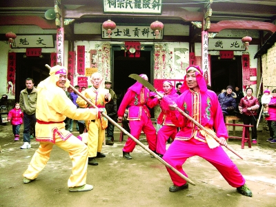 本报记者胡晓军 来到江西省永新县斜陂村,这里的舞龙队、舞狮队、武术队轮番登场,热闹非凡。