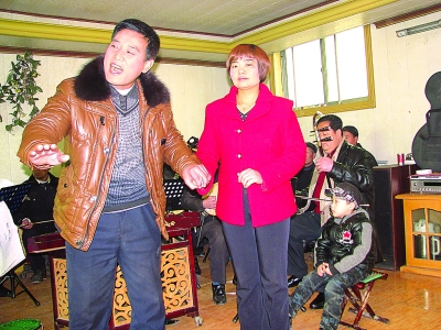 天刚擦黑,山东省临沂市河东区常庄村张敬肃家的堂屋里就聚满了人。调调音,拨拨弦,不一会儿,扬琴、琵琶、笛子、二胡等乐器齐鸣,现代柳琴戏《山里红》唱了起来,这所农家小院一下子变得热热闹闹。