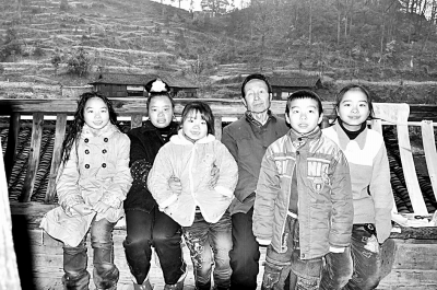 西江千户苗寨侯翁里一家正围在火炉前烤火,敲门声响,侯翁里打开门,瞧见两个小伙子端着相机站在门口。进了门,吴立强和李进不经意地打量起房间的摆设,除了屋顶亮的灯,一台黑白电视机是唯一的电器,堂屋墙壁上贴满了奖状。妻子是二婚,与前夫育有一儿一女。夫妻膝下现有四个儿女。侯翁里说,生活是苦了点,但过得幸福。待吴立强和李进说明来意之后,侯翁里一家子开始排排站。咔嚓一声,笑容定格了。李进把冲洗出的照片交给侯翁里,还未等一家之主瞅一眼,几个小孩便一把将照片“抢”了过去,房子里只剩咯咯的笑声。