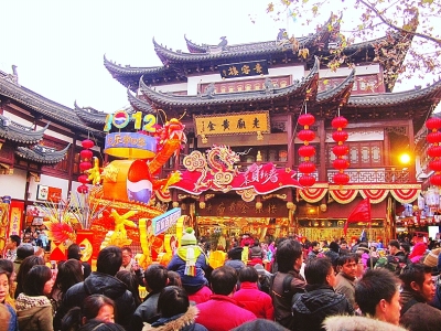 大年初一下午,虽然上海室外温度降到了零度以下,但城隍庙里却是人山人海,热闹异常。在装饰着“中国龙”的九曲桥上,来自世界各地的游客争相穿越桥头那座象征着喜气、运气、福气、财气的“龙门”,或与“中国龙”合影,或忘情于流光溢彩的灯会景物,或对着“龙门”许个心愿、讨个彩头,城隍庙里洋溢着一股浓浓的“中国年”味。