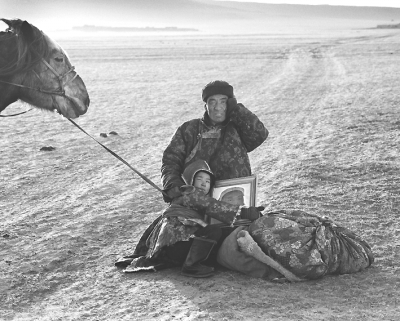2003年起,阿音开始使用黑白胶片拍摄蒙古族人的肖像照。每拍摄一个家庭和人物,他都做细致的采访,记录他们生活的方方面面:羊群的数量、面临的困境、内心的愿望等,他写出详细的图说,丰富着他的镜头记录。