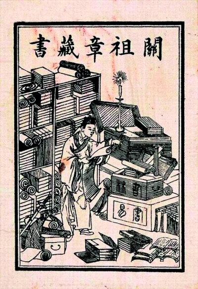 | 藏书票颇受爱书之人的欢迎。1990年,出版人吴兴文在北京琉璃厂淘到了这枚藏书票,画面上是一位头戴方巾的书生,借助蜡烛的灯光在翻看一卷书,其正上方写有“关祖章藏书”。这是国人最早使用的藏书票。 |