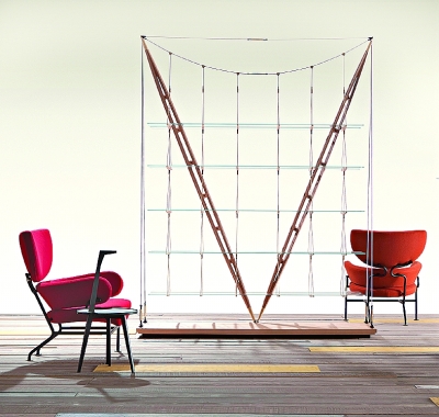 | 帆船书架——意大利家具品牌卡西纳(Cassina)重新设计制造了意大利设计师弗兰克·阿比尼(Franco Albini)于1940年为自己设计的“帆船”书架。这款非常精细的书架的设计灵感来自于帆船,连接节点模仿了风帆的绳索,有着极其复杂的结构设计。 |