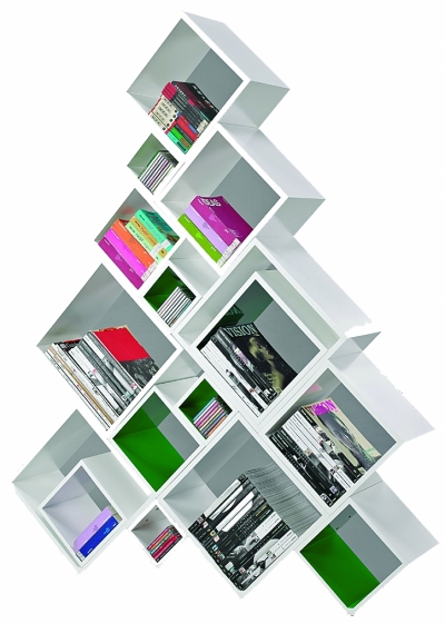 | 森林魔方书架——中国设计师石川设计的书架由4个储物架单元组成,每个储物架单元由4个大小不一的方盒组成,方盒的尺寸适用于不同开本的书籍。 |