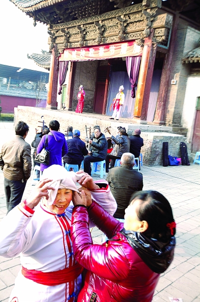 1月29日,历史文化名城陕西省韩城市城隍庙内农民自发演出秧歌欢庆新春。韩城秧歌历史悠久,是国家级非物质文化遗产。