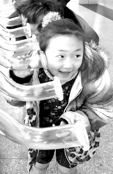 1月29日,小朋友在河南省郑州市科技馆里倾听排箫发出的声音。春节期间,郑州市科技馆里新增了高压放电、科普表演剧及互动型展品展览等,吸引了许多市民带领孩子前来参观。
