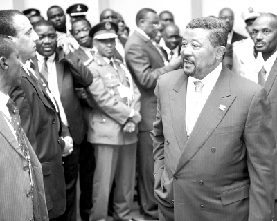 图为1月29日,在埃塞俄比亚首都亚的斯亚贝巴,非洲联盟(非盟)委员会主席让·平步入非盟会议中心。