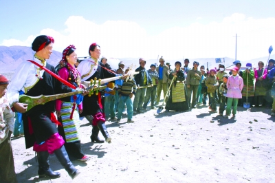 拉萨市城关区当巴社区的居民和夺底乡洛欧村的村民在歌舞升平中欢度佳节。拉萨市歌舞团团长洛桑扎西告诉记者:“拉萨市歌舞团邀请非专业演出团体,以大家喜闻乐见的形式,把精心准备的节目送到社区、农村、孤儿院和敬老院。”