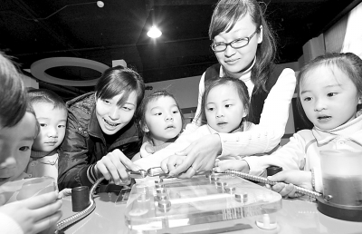 2月2日,,江西省龙南县第一幼儿园的小朋友在县科技馆里感受科普乐趣,孩子们亲身体验了跳格游戏、手摇发电等科普项目,玩得非常开心。最近,龙南县投资1000万元建成的科技馆,已成为当地人普及科技知识的好去处。