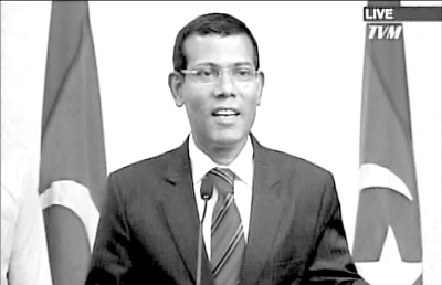 马尔代夫总统纳希德2月7日说,为了国家利益和结束马尔代夫现在的混乱局面,他宣布辞去总统职务。这是马尔代夫总统纳希德宣布辞职的电视画面截图。新华社发