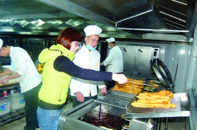 5点40分,豆浆出锅;5点50分桃酥、蛋糕出炉;6点20分,馒头出蒸箱……一切紧张而有序。