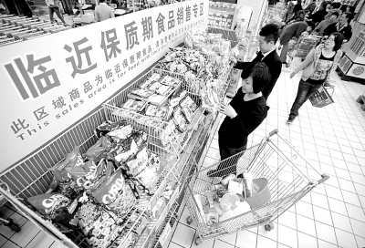 4月8日,市民在沈阳一超市开辟的“临近保质期食品销售专区”选购。当日,“临近保质期食品销售专区”亮相沈阳某超市,该专区有醒目标志,明确标示商品的名称、原价、现价、清仓日期等信息。超市有专人每日严格按照商品上架规定排查,及时清理过期食品,保障消费者合法利益。新华社发(张文魁摄)