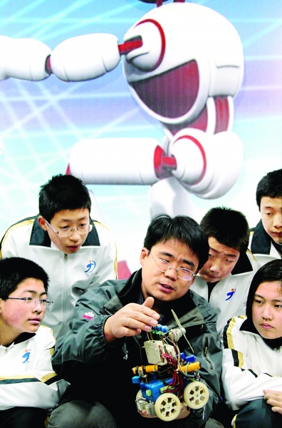 近日,山东省广饶县建设了8处乡村少年宫,并聘请东营边防支队的大学生警官担任辅导员,开设了器乐、绘画、朗诵、棋类、手工制作等40多门课程。图为在乡村少年宫“机器人梦工场”内,孩子们在学习机器人的构造和原理。本报记者 刘新武摄