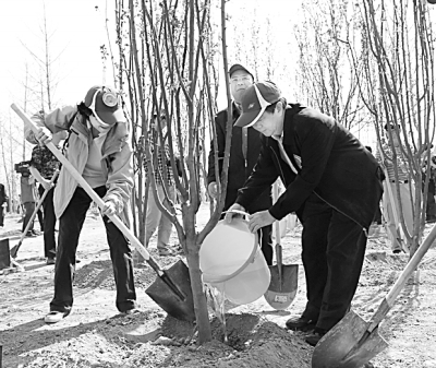 植树现场,人们喜爱的影视演员、主持人、舞蹈家、歌唱家、书法家、军旅艺术家和新闻工作者栽苗浇水,在欢乐和笑声中为京城播撒一片绿色,树立并传播“争做绿色理念的传播者,争做绿色文明的实践者,争做绿色北京的建设者”的信念。