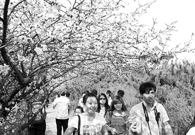 4月14日,游客在北京香山公园香炉峰赏花。近日,北京气温持续走高,市民纷纷换上春装与家人朋友外出踏青,北京市各大公园繁花似锦,游人如织。本报记者 蒋新军摄