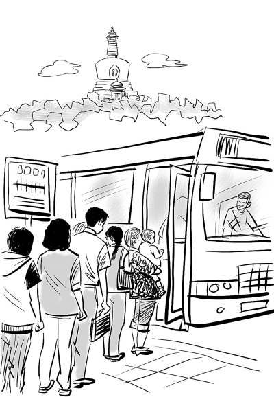 天天都是排队推动日,北京常年文明引导公众树立排队意识,排队在京城蔚然成风,成为城市的一道风景线。绘图:郭红松