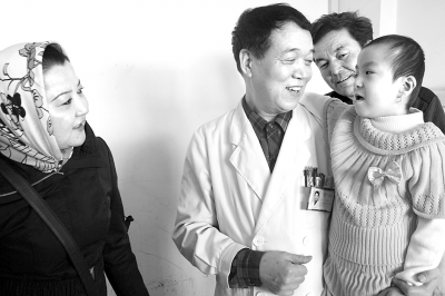 李武德医生告诉帕尔哈提和阿依古丽,孩子的手术很成功,接下去要进行康复训练,培养孩子说话的能力,达到正常水平大概需要一两年时间。在吴力田的建议下,李医生又请眼科的医生对小艾丽菲亚的眼睛做了检查。笔者向帕尔哈提一一转述了医生的诊断,以及对存在的先天性弱视、斜视的治疗方案、建议。听完,他一字一顿地说:“我们以后带女儿到乌鲁木齐去治。”接着长舒了一口气,“现在艾丽菲亚的三个大病的治疗都完成了,太不容易了!最艰难的时期过去了,有这么多的人关心她,我们一定会好好抚养她,让她跟别的小朋友们一样,健康地长大。”尚不能清楚说话的艾丽菲亚则用灿烂的笑容,用优美的舞姿式的鞠躬来表达她的谢意。
