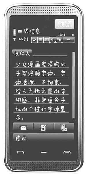 由于近几年来移动互联网高歌猛进、发展迅速,智能手机更是取得了长足的发展。手机系统不断智能化、CPU主频不断提升、屏幕分辨率大幅提高等各方面条件的成熟,给不同风格的字体在手机上的应用提供了绝佳的时机。于是,任何普通个人都不再只是单一的字体使用者,同时也成为了自己手机字体的选择者、自己个性的定义者。