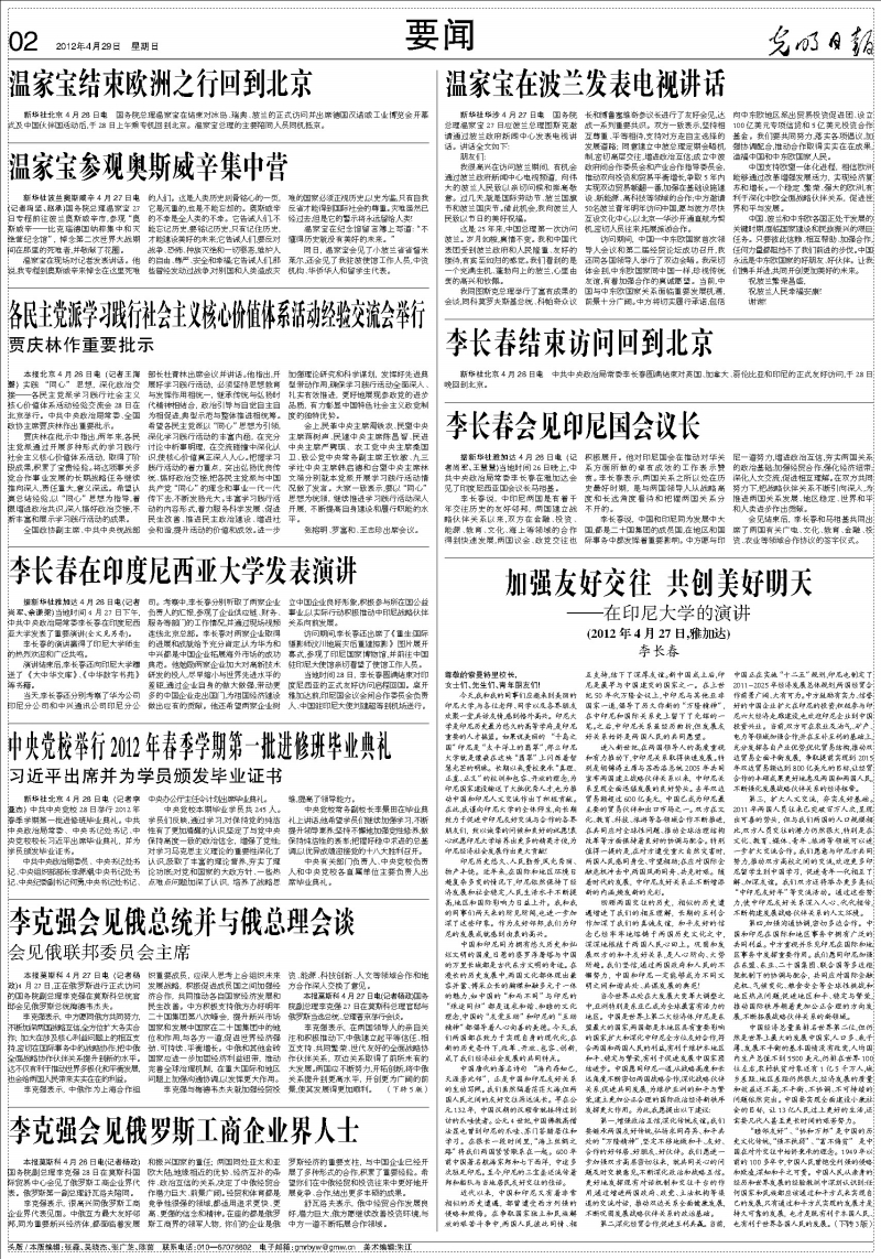 李长春在印度尼西亚大学发表演讲