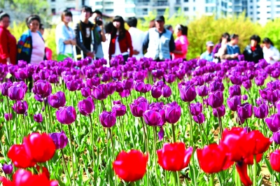 | 5月1日,山东烟台市举办荷兰郁金香花展,共展出荷兰郁金香14个品种,为五一小长假营造出一道异域风情。新华社发 申吉忠摄 |