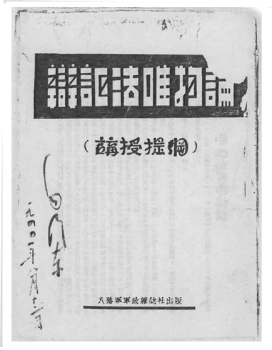 1937年7、8月,毛泽东应红军大学(后来改为抗日军政大学)之邀,向学员讲授唯物论和辩证法,每周两次,每次四小时。他的记录稿经过整理后,从1938年5月6日开始在《抗战大学》上连载。1940年,经毛泽东修改,八路军军政杂志社将讲授提纲以内部单行本的形式出版发行。
