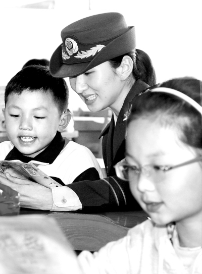 5月2日,山东日照港第一小学学生在民警辅导员的陪伴下阅读经典图书,当日,日照边检站官兵购买了1000余册经典少儿图书送给孩子们阅读。本报通讯员 贺涛摄