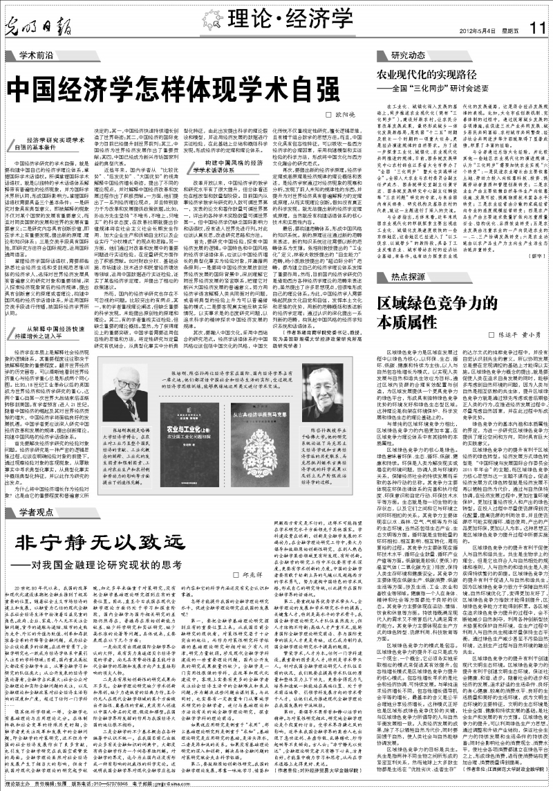 中国经济学怎样体现学术自强