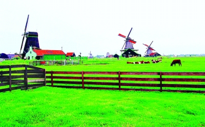 他摇摇头,笑哈哈地慢慢走到农田前,背后是一大片绿油油的草地和正在嚼草的牛群,对我说:“拍下我的木鞋和背景,告诉你家乡的人,这就是荷兰农民。”
