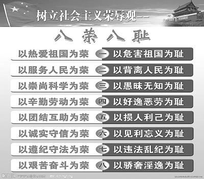 总而言之,以“八荣八耻”为主要内容的社会主义荣辱观及其道德实践标准,是中国历史传统文化的延续,也是构建社会主义和谐社会的现实要求。只有这样,我们才能真正建立一个民主法治、公平正义、诚信友爱、安定有序的社会主义和谐社会。