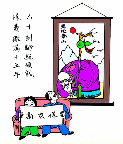 山东省滨州市从2009年部分区县被列入国家首批试点县以来,经过两年时间,2011年将全市154.4万城乡居民全部纳入保障范围,在山东省率先同步实现了城乡居民社会养老保险制度的全覆盖。滨州市农民漫画家张新江通过自己的亲身感受和身边所见所闻,用农民漫画语言形象地解读了新农保政策及新农保给广大城乡居民带来的新变化。本版特选登部分作品,以飨读者。