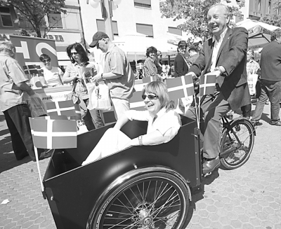 5月5日,在克罗地亚首都萨格勒布,丹麦驻克大使韦伯骑着丹麦特色的三轮车载着夫人安妮参加“欧洲日”活动。克罗地亚有望于2013年7月1日成为欧盟正式成员。当天的“欧洲日”活动是为了向民众介绍更多关于欧盟的知识。