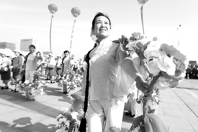 5月6日,身着彩装的群众在河南省信阳市会展中心广场表演《固始花挑》。《固始花挑》是信阳市独有的民间舞蹈形式。已被列入省级非物质文化遗产名录。本报记者 郭俊锋摄