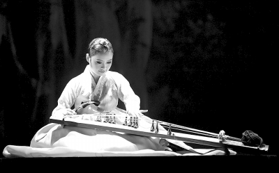 5月9日,由吉林省延边歌舞团排演的大型朝鲜族原创歌舞《放歌长白山》在吉林省东方大剧院上演,整台演出共分5个部分、16个节目,以优美的音乐和独特的舞蹈展现了延边人民建设富裕、和谐家园的精神风貌。《放歌长白山》将参加6月在京举行的第四届全国少数民族文艺汇演。图为演员在表演伽耶琴独奏。