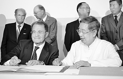 5月11日,全国人大常委会原副委员长许嘉璐与意大利前总理、欧盟委员会前主席、全球合作基金会主席罗马诺·普罗迪在意大利博洛尼亚共同签署首届“中西医药文化与人类健康对话”博洛尼亚宣言。首届“中西医药文化与人类健康对话”10日至11日在意大利博洛尼亚举行。这次对话由中华医药文化国际交流中心(又称波恩项目)和意大利的全球合作基金会共同主办,来自中国、意大利、英国、德国等8个国家的150名代表参加。