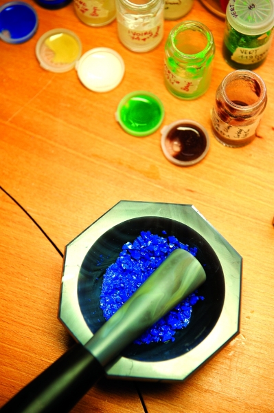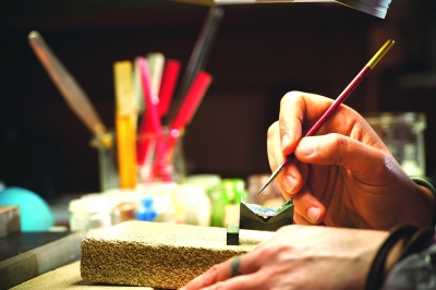 珐琅表的制作过程繁复而精妙,可以说是艺术与技术的完美融合。在金属表盘上覆盖一层珐琅釉做成表面,彩绘师借助显微镜,用特制的针笔细致描绘出绚烂的图案,再经过800℃的高温烧制,使色彩愈加饱满。每件珐琅表均要经过多次上釉、烧制和打磨,才能最终绽放出璀璨的光芒。