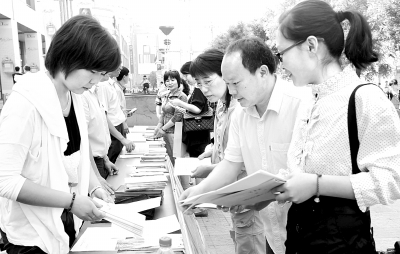 5月17日,北京市西城区椿树街道就业援助中心联合辖区企业联盟单位,在北京市西城区繁华地段开展了就业援助招聘会,为现场求职的人员提供职业指导、岗位推荐和即时帮助,仅椿树街道社保所一个上午就帮助30余名失业人员与用工单位达成了就业协议。 本报记者 郭俊锋摄