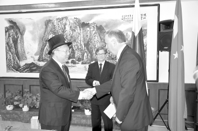 | 图为坦佩雷技术大学校长基维考斯基授予路甬祥证书和博士帽。 赵广俊摄 |