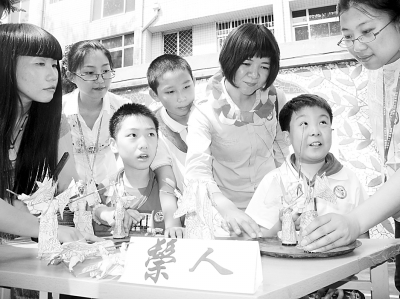 5月25日,北京市东城区遂安伯小学学生在做鬃人。当日,该校举办了“扬传统文化、过非常六一”主题活动,学生们现场体验制作传统书签、画脸谱、做毛猴、做鬃人等活动。本报记者 刘新武摄