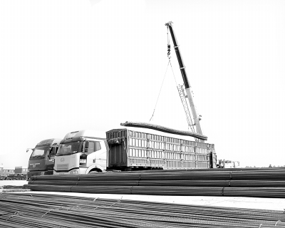 5月29日,物流中心内的吊车在装载钢材。当日,位于长春合隆经济开发区内的吉林省金泰钢材物流中心正式投入运营。