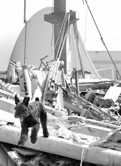 5月29日,在意大利北部的米兰多拉,一只小狗在地震造成的废墟中奔跑。意大利北部艾米利亚—罗马涅大区29日上午发生里氏5.8级地震,目前已造成至少9人死亡。新华社发