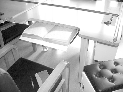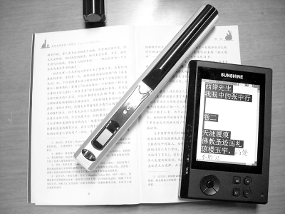 在盲文图书馆有声读物阅听区,有专门的音频播放器,将磁带、光盘等装好后,可以根据需要进行各种操作。阅览室桌面上摆放的形似PSP掌机的阅听工具吸引了记者的注意,工作人员介绍说:“这是我们社的研发队伍自主研发的阳光听书郎二代,只要用这个手持扫描棒扫过明文书页,将芯片放进终端机上,30秒内就能听到书上的内容了。”低视力者还可以直接将安有摄像头的听书郎放在书页上,通过放大的字来读书。第一代阳光听书郎长得更像MP3,能够存储txt、word等格式的文件,自动转换成音频。盲文图书馆特别建立了中国视障文化资讯服务平台,全国的盲人读者通过自己的账号登录平台后,可以免费选听里面的有声读物。
