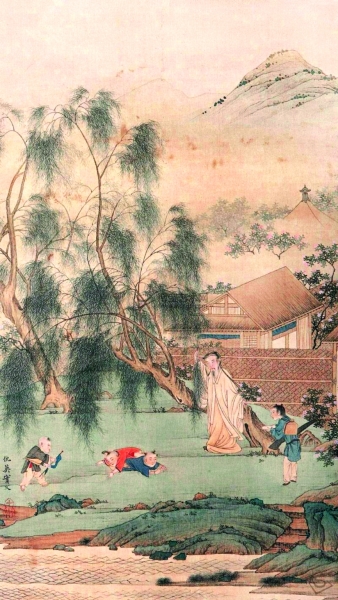说起与童趣相关的故事,春秋时期齐景公的“俯首甘为孺子牛”可算较早的一例。《左传》上说,齐景公的儿子荼蹒跚学步时,为了让儿子快乐,他口衔绳子俯身地上爬走作牛行状,荼牵绳前行,突然摔倒在地,绳子把齐景公的牙齿也拉折了。假如他不是十分喜欢儿子,是万不会做“孺子牛”的。另外,人们所熟知的成语“含饴弄孙”(语出《后汉书·明德马皇后传》),其实就是老人口含饴糖逗弄孙儿,此时小孩的天性充分展现,大人能够尽情欣赏童趣。