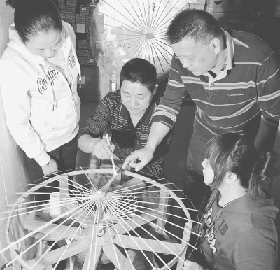 这几年,西湖绸伞的传承人问题成为宋志明必须要面对的尴尬。采用传统的师徒传承方式已经不现实了,外面诱惑太多而这个手艺又不能很快产生经济效益。现在,宋志明收的6个兼职徒弟都是他动员的熟人。“我要求他们每个人都能学几道工艺,起码通过这种方式可以把这个手艺传承下来。”他说。