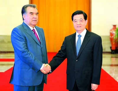 胡锦涛同塔吉克斯坦总统拉赫蒙会谈