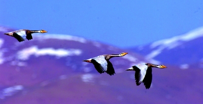 斑头雁为雁型目鸭科,大部分的斑头雁在印度等海拔较低的地方过冬,春季翻越喜马拉雅山脉到青藏高原繁殖。去年6月美国国家地理网称它为世界上飞得最高的鸟,八小时就能飞越最高峰近9000米的喜马拉雅山脉。